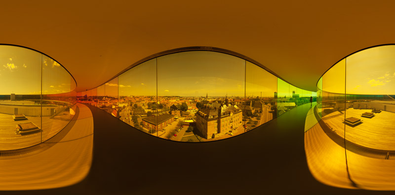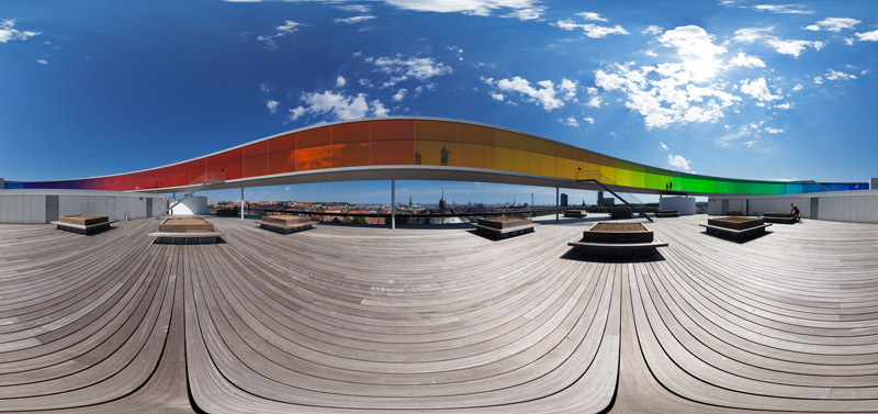 "Your rainbow panorama" von Olafur Eliasson auf dem Dach des Aarhus Kunstmuseum, Dänemark |